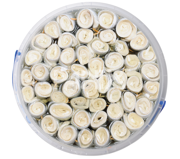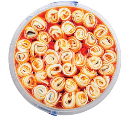Mini fileciki śledziowe marynowane, zwijane w ślimaczki;