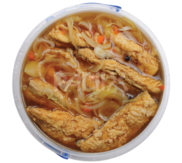 Płat śledziowy panierowany i smażony; w aromatycznym sosie pomidorowym własnej produkcji.